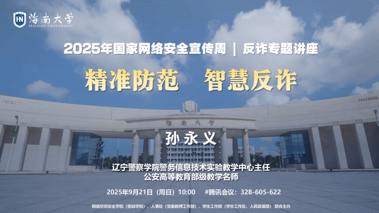 2025年9月15日至21日是第十二届国家网络安全宣传周,本次活动的主题是“网络安全为人民,网络安全靠人民——以高水平安全守护高质量发展”。必赢bwin网页版积极响应国家和海南省号召,开展国家网络安全宣传周系列校园活动,大力普及网络安全知识,强化师生网络防护技能,营造安全健康的校园网络环境。